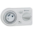 Cronotermostato elettronico giornaliero analogico alimentato a batterie, con programmazione giornaliera tramite orologio su 2 temperature impostabili tramite manopole.