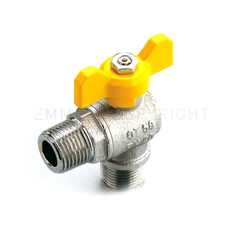 Valvola a squadra tiemme per gas m/m 1/2" con leva gialla 2220001